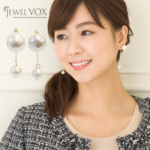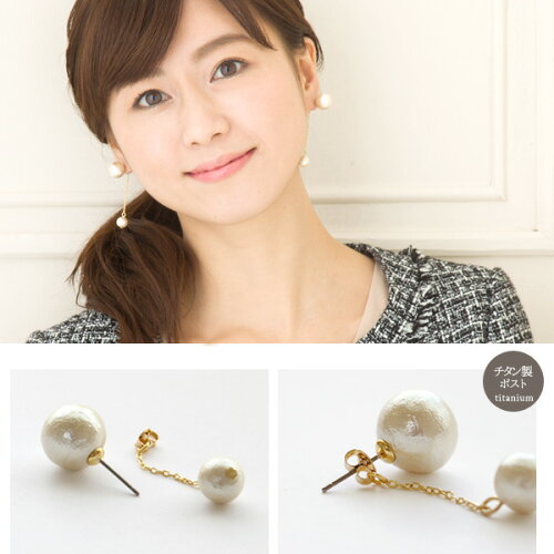 【ネコポス送料無料】ピアス 金属アレルギー コットンパール BIGサイズ&バッグチェーン パール バックキャッチ レディース 16Kコーティング チタンポスト アクセサリー jewelvox ママスーツ 入学式 卒園式 パーティドレス