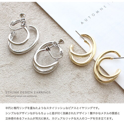 keyword :ピアス 金属アレルギー イヤリング ノンホールピアス■□ Item information - 商品説明 - □■ 半円と楕円リングを重ねたようなスタイリッシュなピアスとイヤリングです。